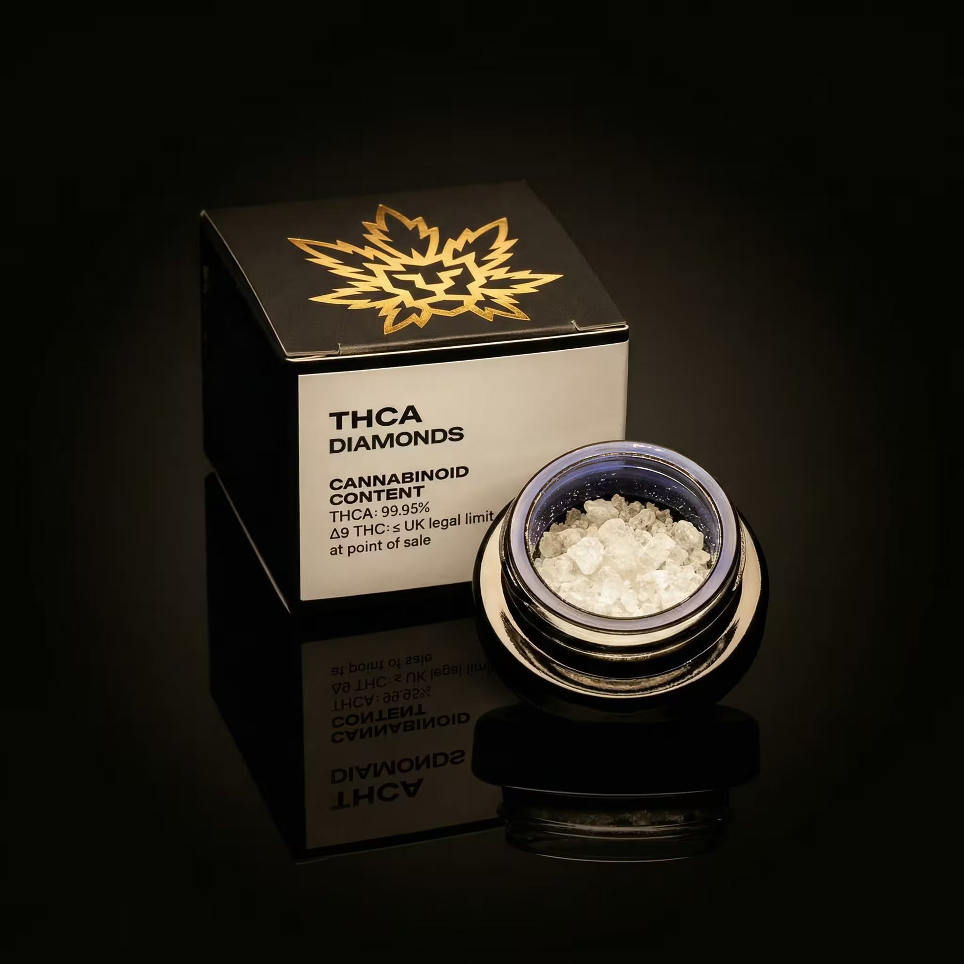It contains THCA in its non-decarboxylated form, which is not listed as a controlled substance under the Misuse of Drugs Act 1971 when supplied within applicable Δ9-THC limits.